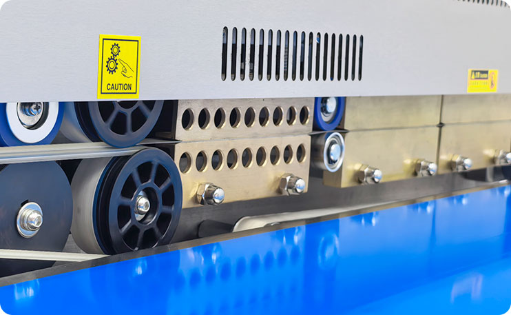 Exclusivo para máquinas de sellado de alta gama, mejorado con un ventilador de alta potencia. La textura de la abertura de la bolsa, presionada por la zona de fusión en caliente, se enfría y moldea rápidamente.